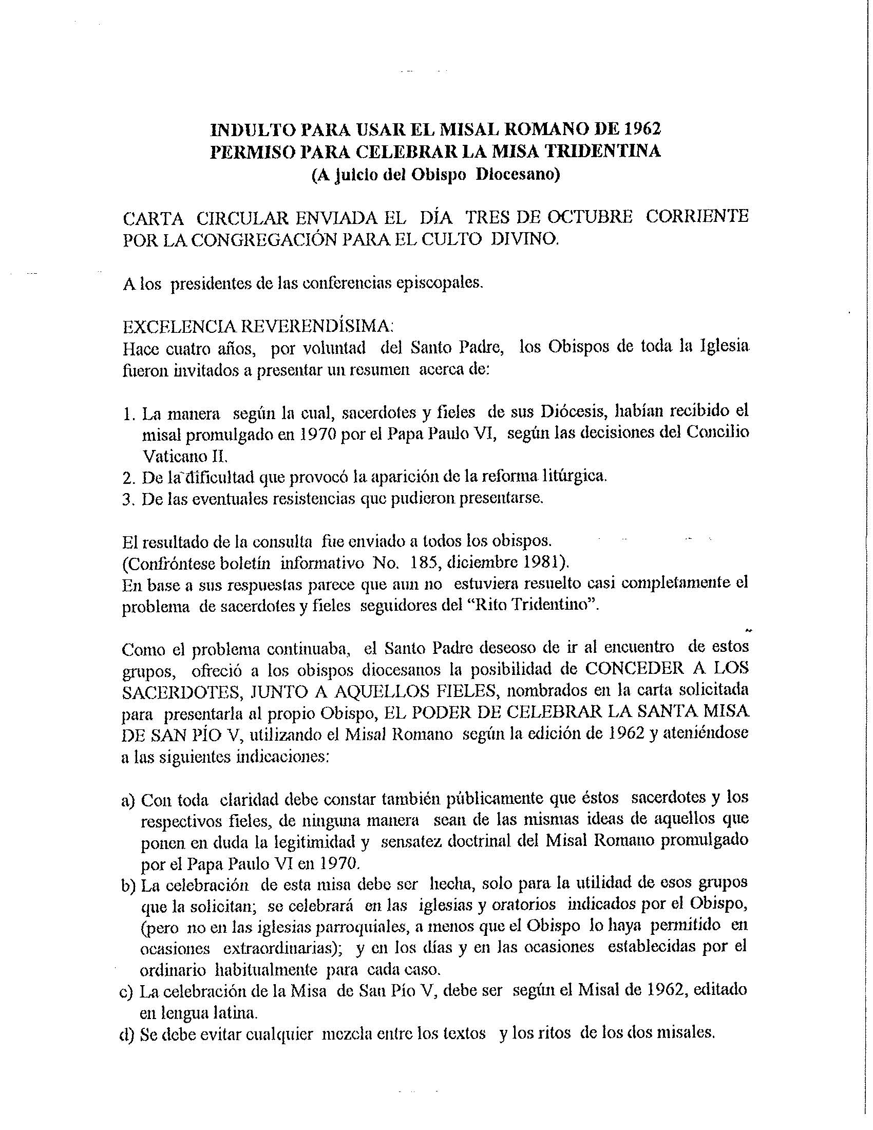 - Alimenta tu fe (Pastorales, Documentos pontificios, Folletos doctrinales, Sacrificium Hoja Dominical de Misa Tridentina (Lectura y Descarga), Temas de actualidad